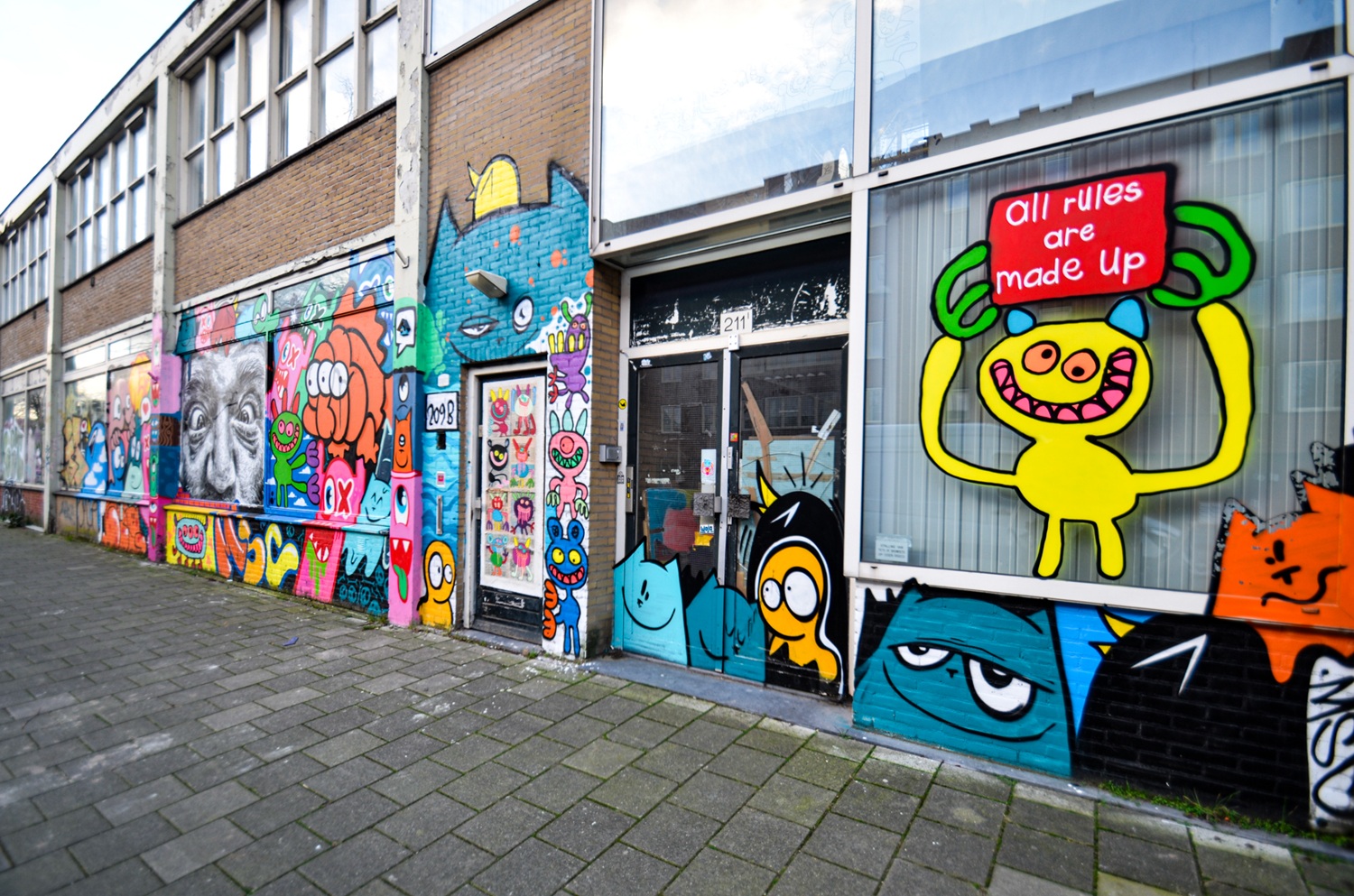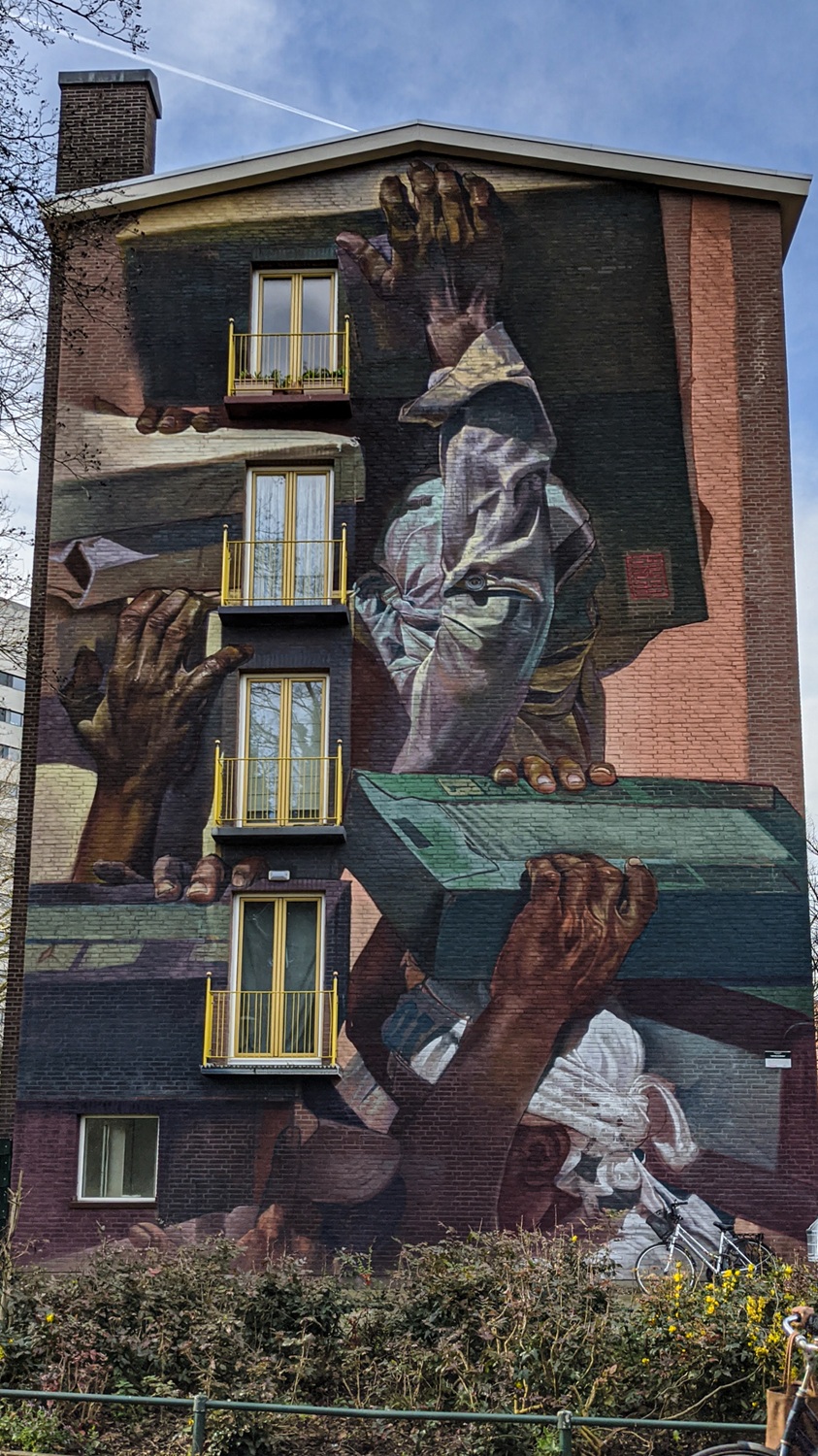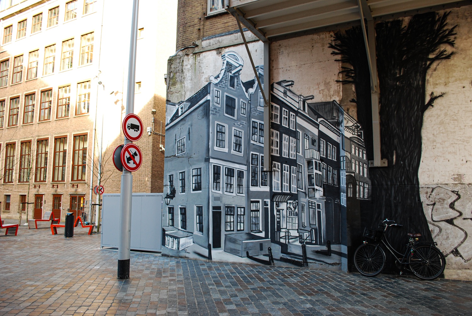 Over: Op verzoek van woningcorporatie Eigen Haard en de Hogeschool van Amsterdam (HvA) schilderde Amsterdam Street Art (ASA) een visuele verbinding tussen het historische gebied en het vernieuwde campusgebied van de middelbare school.