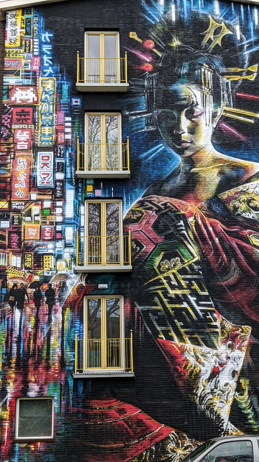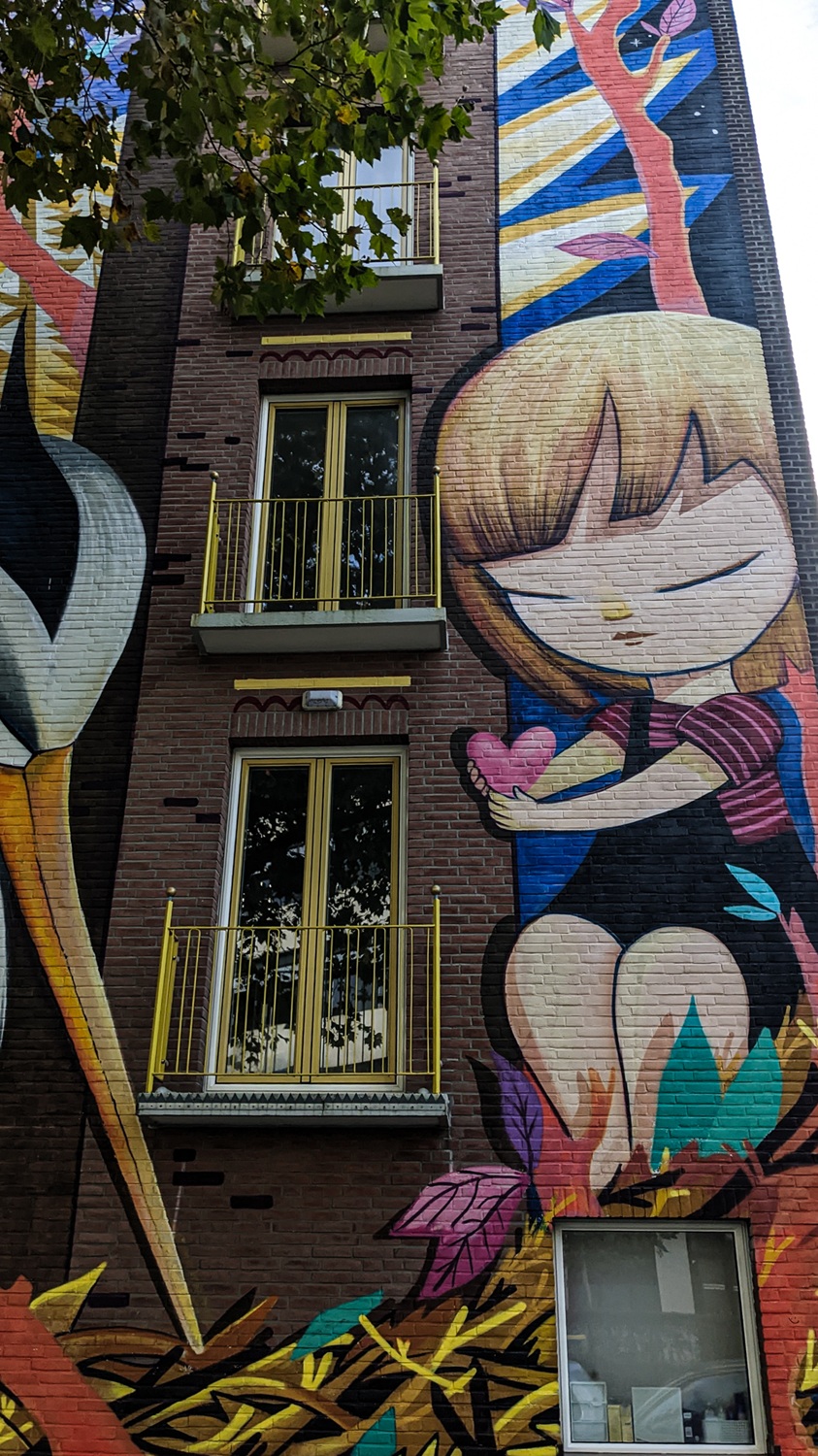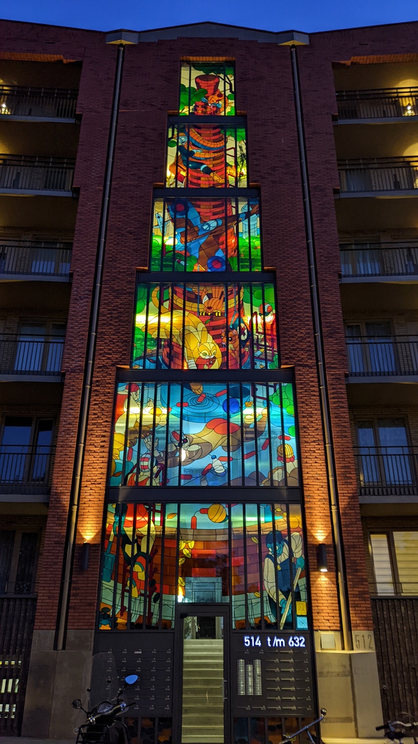 Over: Op verzoek van woningcorporatie Eigen Haard en de Hogeschool van Amsterdam (HvA) schilderde Amsterdam Street Art (ASA) een visuele verbinding tussen het historische gebied en het vernieuwde campusgebied van de middelbare school.
