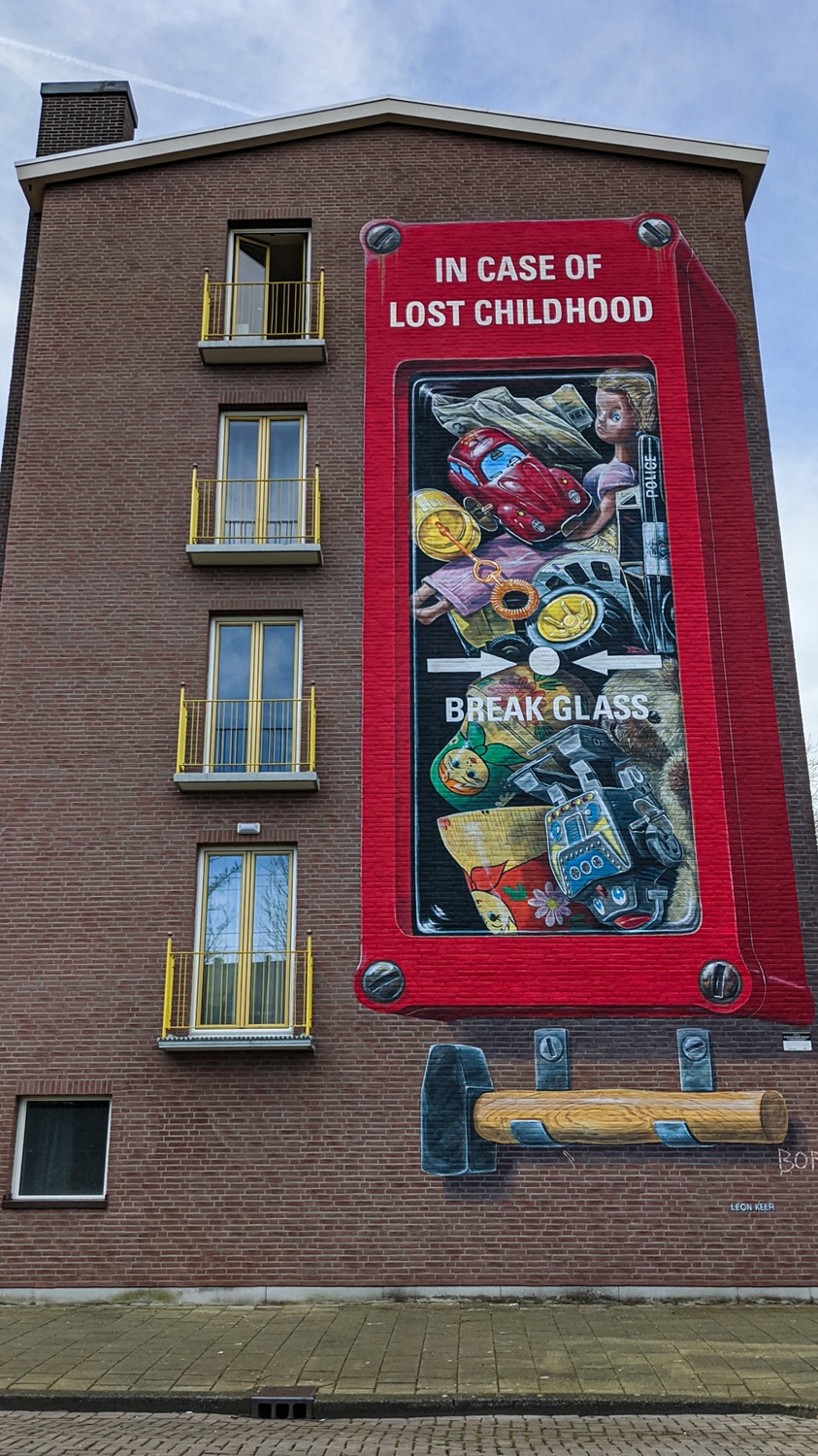 Voor deze specifieke muurschildering was het belangrijk dat de mensen uit de buurt betrokken werden bij de uiteindelijke beslissing over het ontwerp. De winnaar was een ‘nostalgisch’ stadsbeeld met enkele lokale herinneringen en historische feiten.